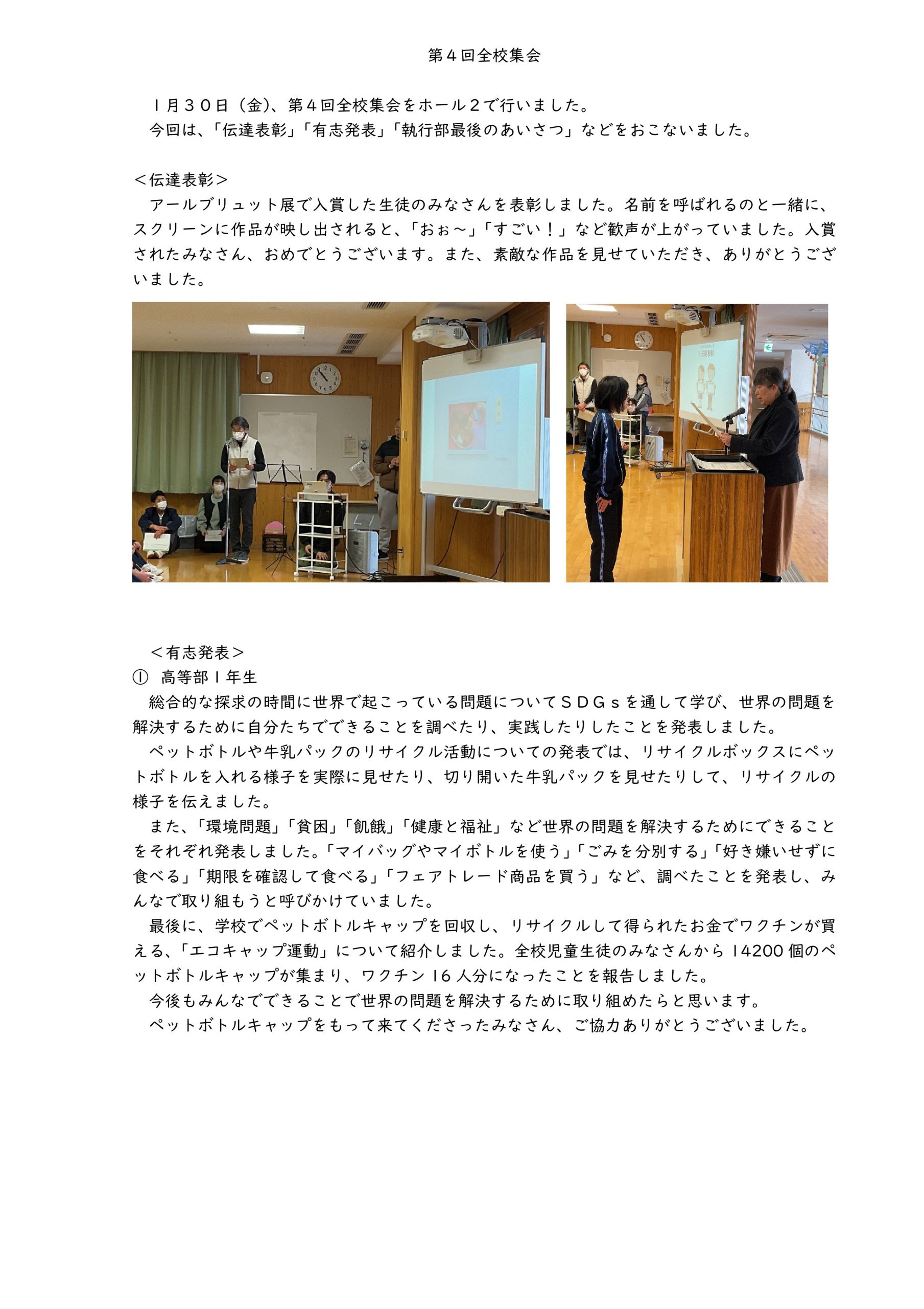 令和7年度 第4回全校集会が行われました。