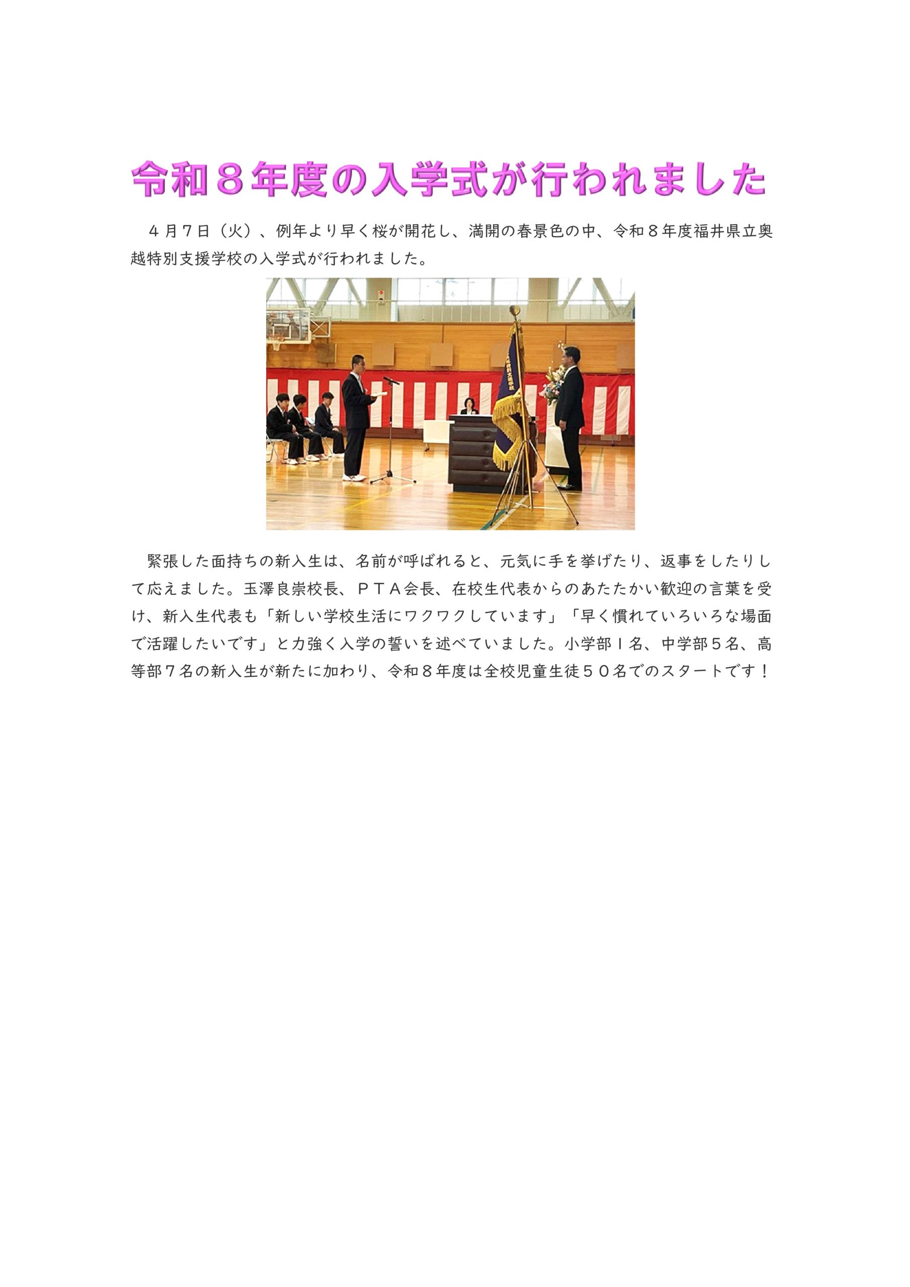 令和8年度 入学式が行われました。